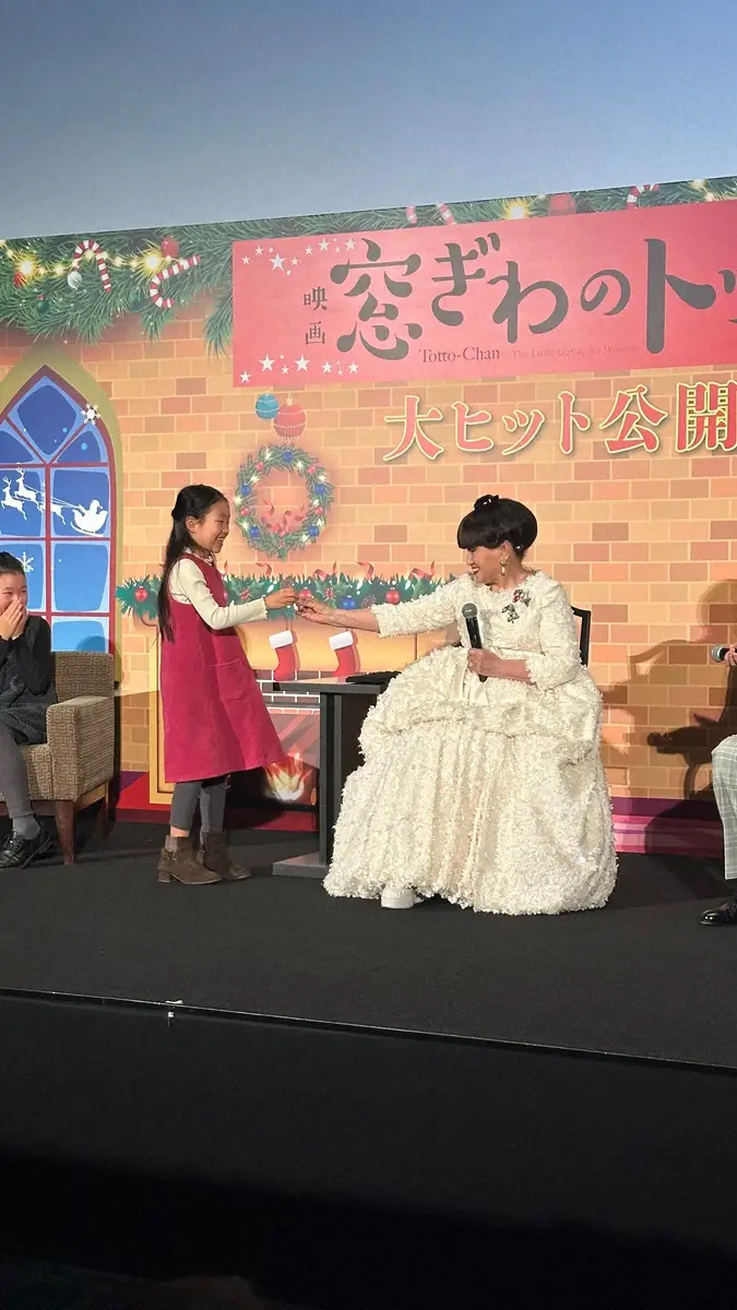 同作は、1981年発行の黒柳の大ヒット自叙伝の映画化。「小学生低学年のころ、教会のコーラスグループにいたので、病気の方の家の窓の下に行って、クリスマスの歌を歌ったことが忘れられない思い出です。いい映画で涙が出ました」と、目を赤くはらしたまま語った。