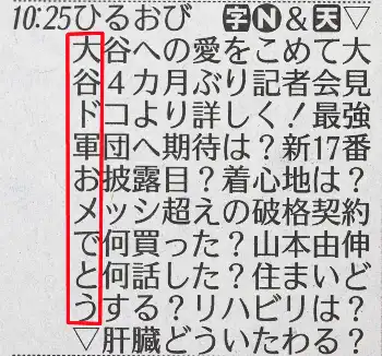 「大谷ド軍おメでとう」TBSラテ欄が縦読みでドジャース入団を祝福 15日午前8時から入団会見