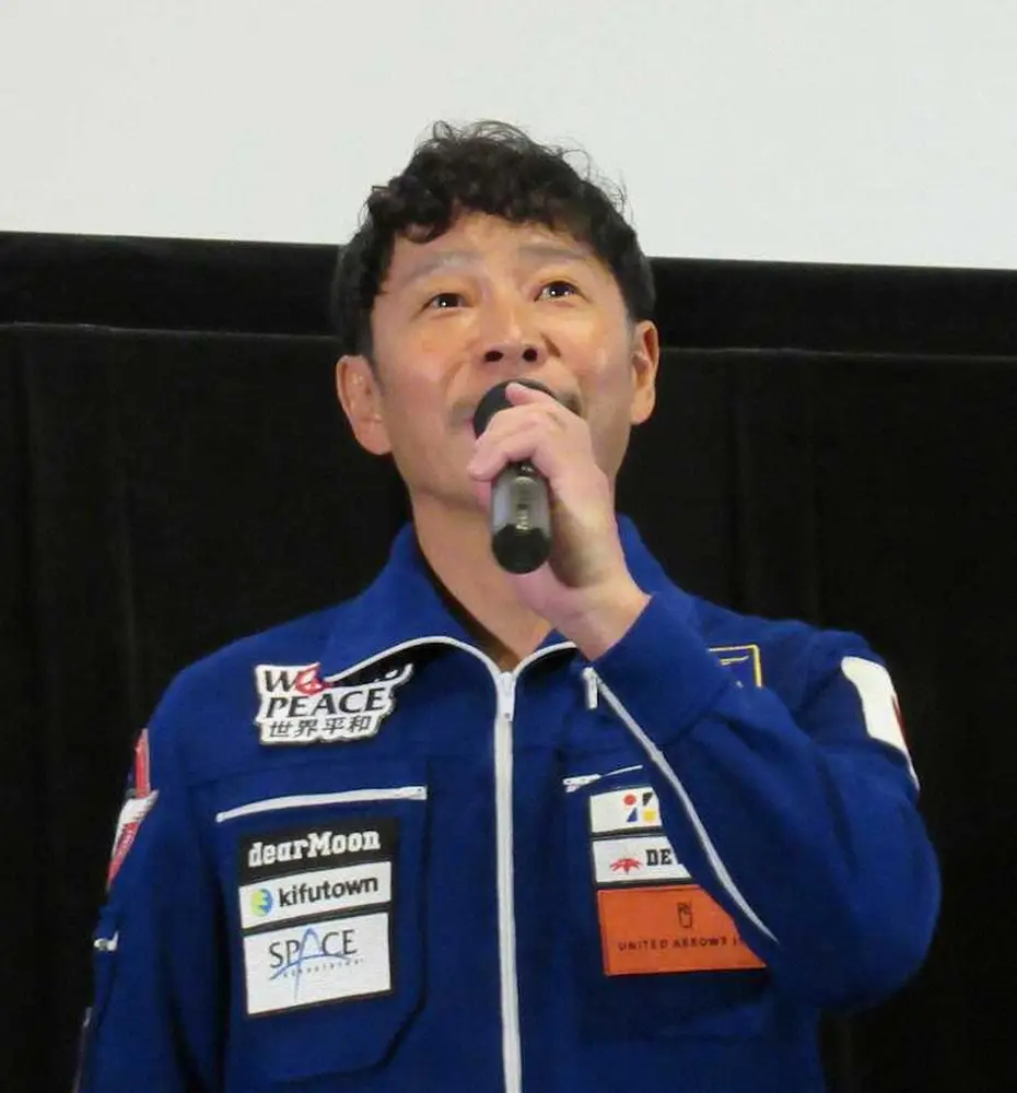前澤友作氏「もったいないので1度も洗ってません」 フライトスーツで試写会あいさつ