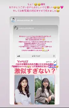 菊地の投稿に、タレントの住谷杏奈は自身のストーリーズで「ペロナが虐げられたりひどいコトされるたびに『亜美ちゃーん』て気持ちになってました。劇似すぎない?」と、菊地とキム・ヒョンスの比較画像を投稿し反応している。