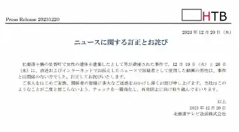 北海道テレビ謝罪 遺体遺棄事件で無関係の男性を「容疑者」と放送…ネット物議「謝罪だけで済むのか」