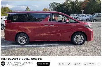 というのも、梅村のアルファードの色は赤で「ダークレッドマイカメタリック」。浜本は「黒のイメージがある。赤って珍しくない?」と言い、梅村自身も「大阪走っていてもあまり見ないですし」と言うほど。実際に千葉トヨタが販売したアルファードの色比率を発表しており、ホワイトパールクリスタルシャインが69%、ブラックが21%、スパークリングブラックパールクリスタルシャインが7%、グラファイトメタリックが2%でダークレッドマイカメタリックは1%というデータを公表している。
