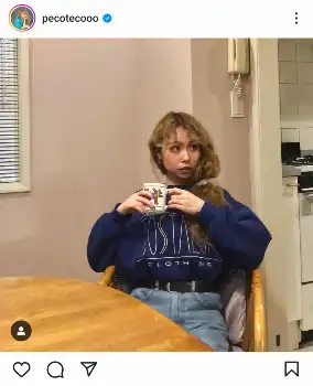 pecoはマグカップを手にして座る写真を投稿し「やばい話聞く?」と書き始めると「わたし最近、白湯飲んでるねん(ぺえに「白湯なんて飲んでなんなのよあんた」って言われそうやけど)」と続けた。