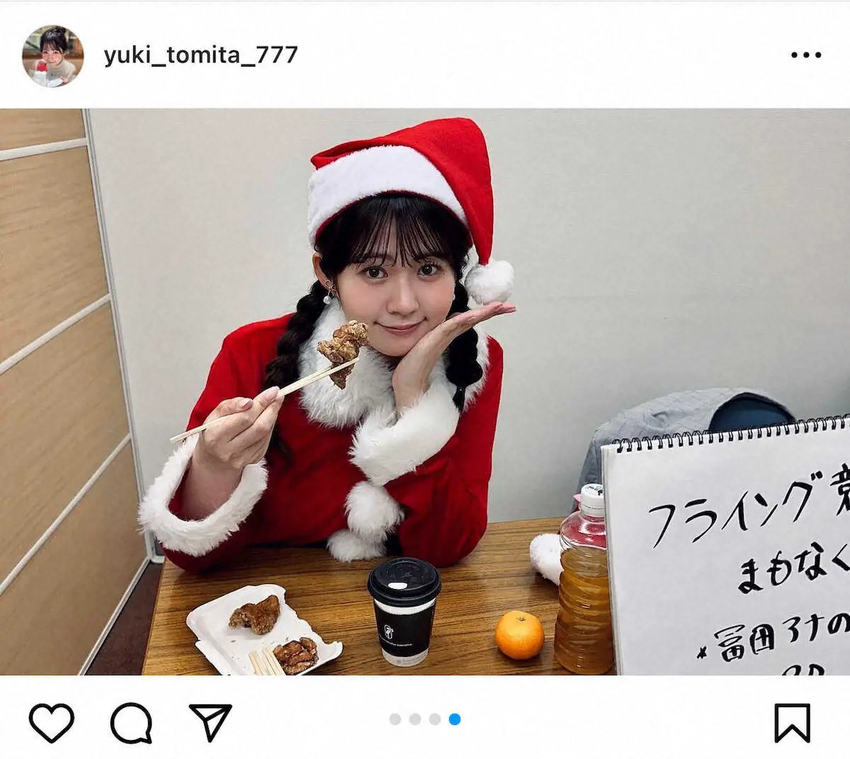冨田有紀の公式インスタグラム(@yuki_tomita_777)から。 競馬中継の人気女子アナ「有馬記念とても楽しみ」 “美脚”サンタコスプレS… ギャラリーで見る この記事のフォト 2023年12月23日の画像一覧 もっと見る 2023年12月23日の画像をもっと見る