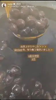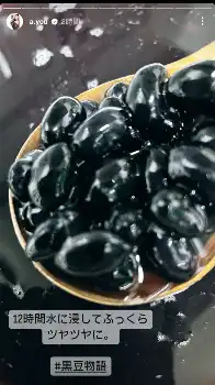 浜崎は自身のチームメンバーのダンサーの母から黒豆が送られたことを明かし、まず水につけるところからストーリーズでレポート。