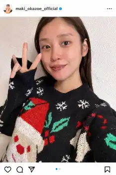 岡副麻希 寝起きすっぴんの“サンタセーター”姿にフォロワー「すっぴん綺麗」「寝起き可愛すぎ」