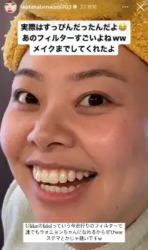 この投稿には「なんだかんだで渡辺直美めっちゃすっぴん綺麗じゃない?これノーフィルターでしょ。こんだけアップにして毛穴とかシミシワ無いのすごい」「私は凄い美人だなぁってずっと昔から思ってたよ」「美人さんなんだよね 出始めの頃からそう思ってた。だから驚きはしないけども 綺麗だなー」と驚く声のほか、このフィルターを使用して自撮りするファンから「渡辺直美ちゃんのストーリーで見たUlikeのidolフィルターえぐいかわいくなってびっくりした。みんな使ってみて!?まじでこの顔になりたいんだよな…という仕上がりになった」「このフィルターはエグイ…」「渡辺直美がストーリーで言ってたUlikeのidolてやつが、顔変わりすぎて涙出るほど笑った」と、さまざまな声があがっていた。