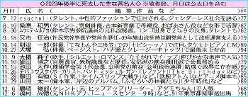 【激動2023】2023年も多くの著名人が亡くなった。2022年下半期に亡くなった著名人をしのぶ。