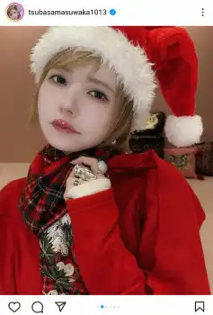 「メリークリスマス 今日は特に予定入れてなくて仕事しておしまいだけど、みんなが浮かれてるこの季節は気分が上がる。昨日は家族でまったり過ごした つばサンタも成功した」と報告し、サンタ帽子に赤のトップス&スカート、マフラー姿の写真を投稿。