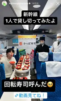 はじめしゃちょー、新幹線を1人で貸し切り キャッチボールに回転ずし…「これまじ炎上するぞ!」