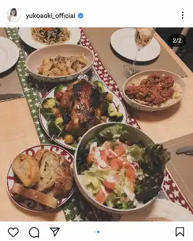 食卓のショットは「家族でクリスマスパーティー」でのもので、今年は「子供たちの友人とクリスマスパーティー」もあったとし、「私は両日チキンを焼いて、今年は両日まあまあの出来で(焦げたけど)嬉しかったです」と回顧した。
