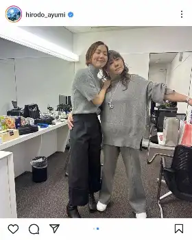 今年M-1で初の審査員を務めたともこは27日に52歳誕生日を迎えた。ヒロドは「ともこさん お誕生日おめでとうございます そしてM-1グランプリお疲れ様でした」と書き出すと、M-1決勝本番前の楽屋でのグレーのニット、紺のパンツ姿の自身と、白のTシャツ、グレーのパンツ姿のともこの2ショットをアップ。