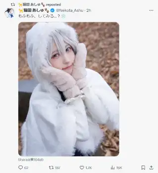 人気コスプレーヤー猫田あしゅ “もふもふショット”公開に「妖精さんみたい」「シマエナガ」「イエティ」
