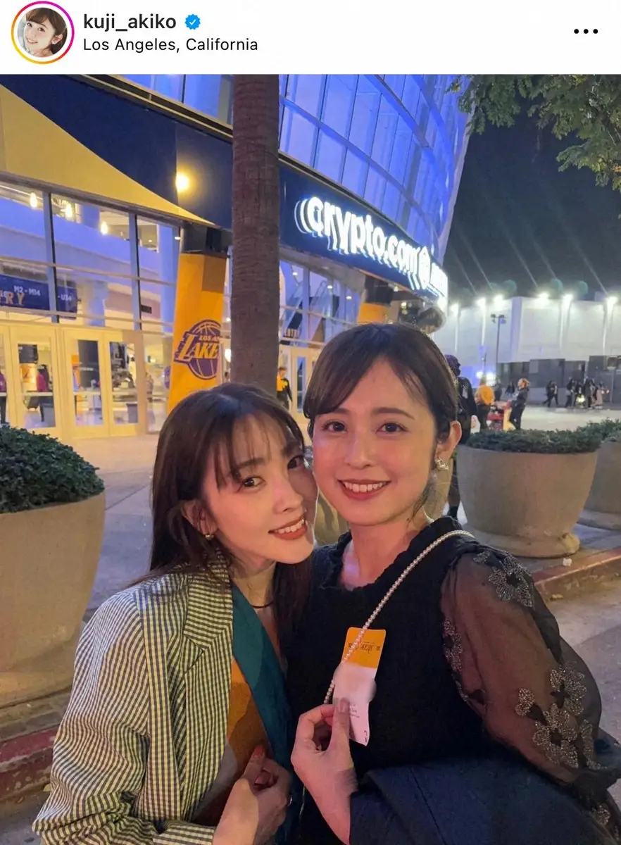 三上アナも「お休みを使ってLAに」と写真を投稿。「旦那様にもお会い出来ました 生NBAは迫力満点!かっこよかった~~」と本場のNBAの凄さを生で感じ、大興奮の思い出を振り返った。