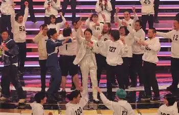 「どんこ坂~第7回けん玉世界記録への道~」と題した、今年の挑戦。17年に初めて行った紅白でのギネス挑戦は、失敗に終わった。18年は成功、19年に失敗した後は、昨年まで3年連続成功中だった。昨年は127人全員が見事に球を大皿に乗せ、「連続してけん玉をキャッチした人の最も長い列」の記録を見事に達成。