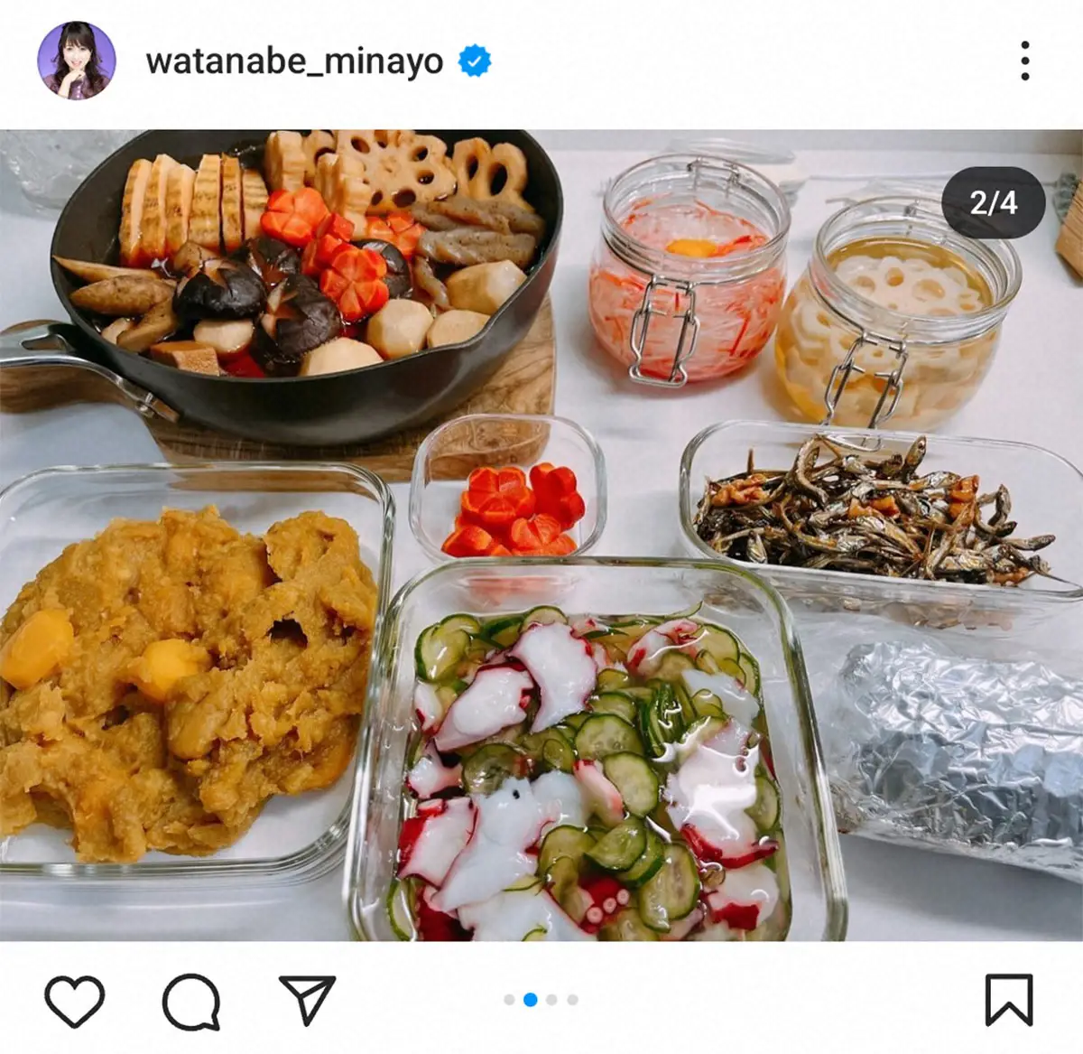 タレントの渡辺美奈代(54)が31日、自身のインスタグラムを更新。おせち作りの様子を披露。さらに年越しそばも作ってから片づけたピカピカのキッチンも披露した。