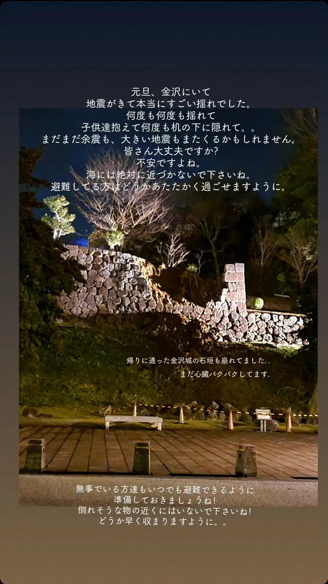 夏菜 Photo by スポニチ 夏菜「元旦、金沢にいて」大地震に遭遇…余震続きで「子供達抱えて何度も机… ギャラリーで見る この記事のフォト 2024年01月02日の画像一覧 もっと見る 2024年01月02日の画像をもっと見る