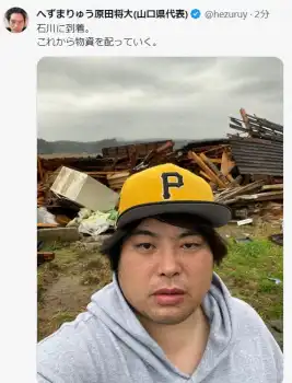 へずまりゅう、地震被害の石川に到着 倒壊した家屋の前で自撮り 「有言実行さすが」「感動」称賛の声