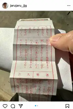 後藤淳平のインスタグラム(@jarujaru_jjg)から ジャルジャル・後藤「福徳は一人でじゅうぶん」おみくじの内容に笑撃「神… ギャラリーで見る この記事のフォト 2024年01月03日の画像一覧 もっと見る 2024年01月03日の画像をもっと見る