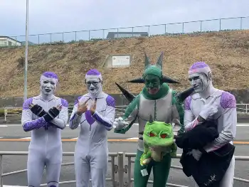 アニメ「ドラゴンボール」に登場するフリーザに扮して沿道で応援している一行「フリーザ軍団」が今年も7区・二宮の沿道に姿を見せた。