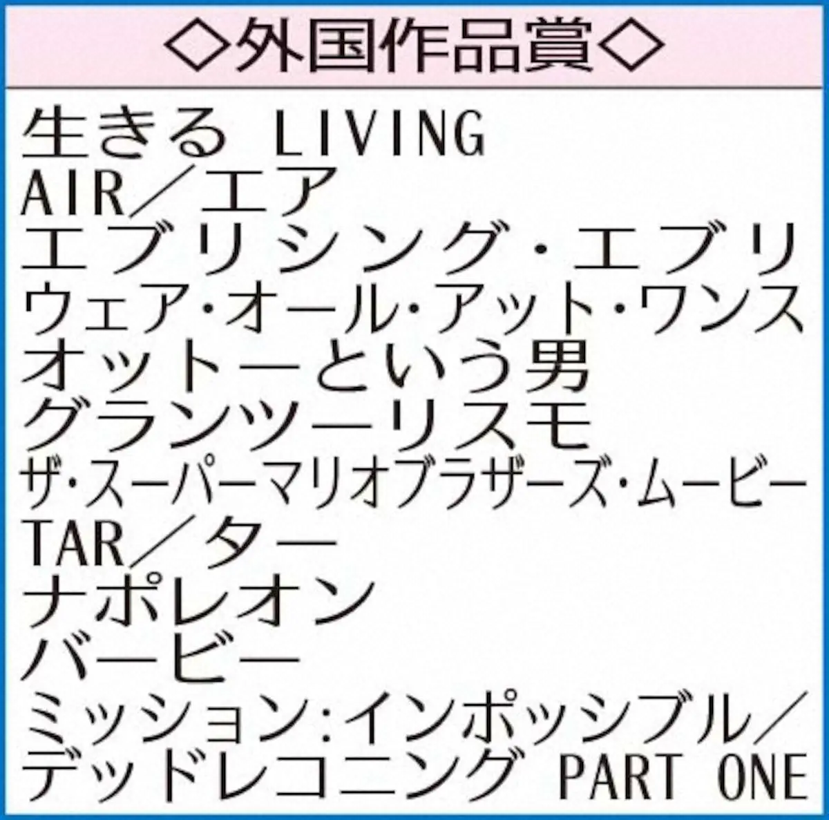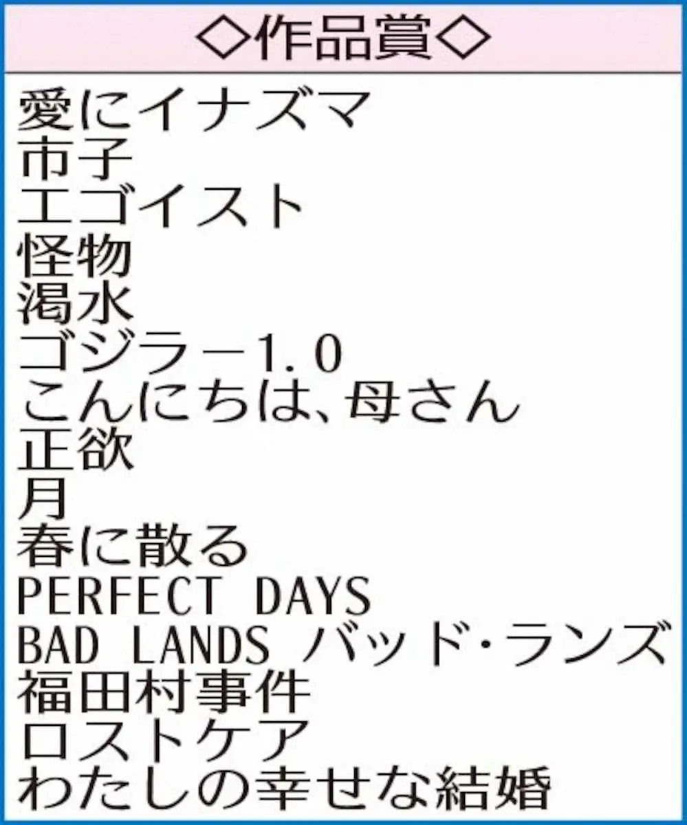 ◇第66回ブルーリボン賞各賞候補◇ Photo by スポニチ 第66回ブルーリボン賞 「月」「エゴイスト」が最多5部門ノミネート ギャラリーで見る この記事のフォト 2024年01月04日の画像一覧 もっと見る 2024年01月04日の画像をもっと見る