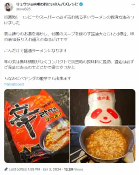 料理研究家リュウジ氏 被災地向け“食糧情報”を発信中 辛いラーメンを醤油ラーメンにする方法など紹介