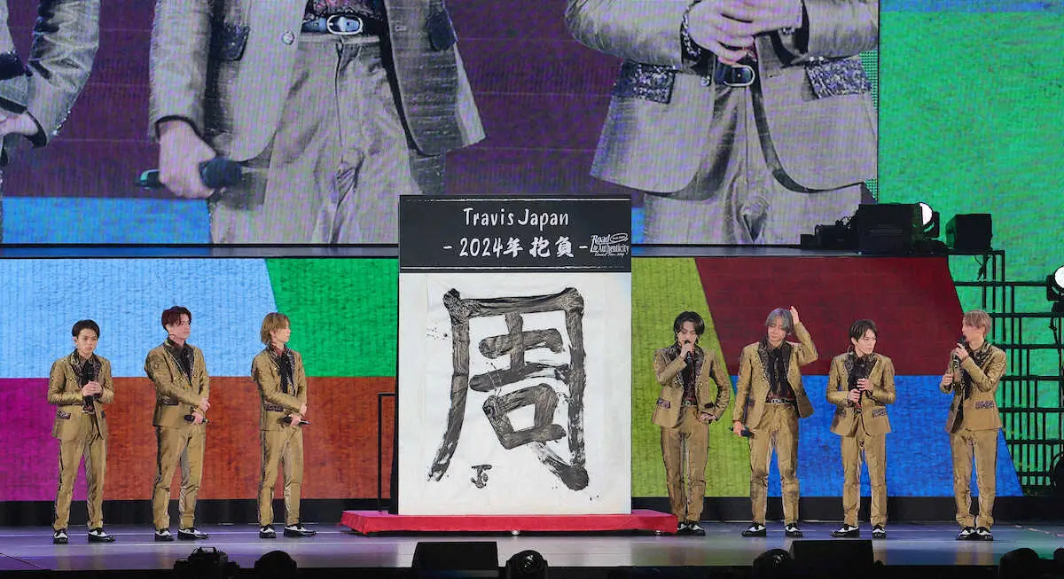 熱唱するTravis Japanの(左から)七五三掛龍也、松田元太、川島如恵留、松倉海斗、宮近海斗、吉澤閑也、中村海人(撮影・光山 貴大) Photo by スポニチ Travis Japan 全国ツアー初日「しんがきんね~ん!」 横浜アリーナで1万… ギャラリーで見る この記事のフォト 2024年01月05日の画像一覧 もっと見る 2024年01月05日の画像をもっと見る