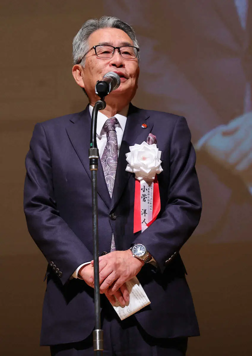 主催者としてあいさつに立ったスポーツニッポン新聞社の小菅洋人代表取締役社長は「今は藤井一強の時代と言われますが、“駒大一強”とされた先日の箱根駅伝では青学大が優勝した。今年は辰年。ぜひ名前に入った竜のように、菅井八段には頂点を目指してほしい」と力を込めた。