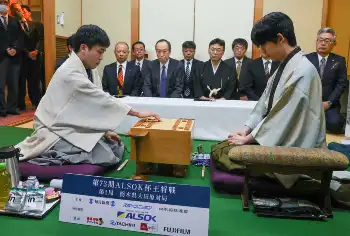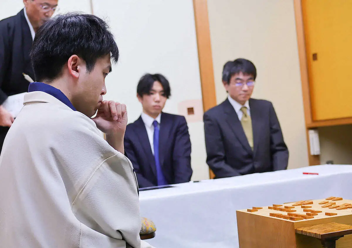 先手番の菅井は三間飛車を選び、後手番の藤井は居飛車で対抗。両対局者ともに最も守りの堅い囲い「穴熊」に組み、互いの出方を伺うジリジリとした展開に。千日手の可能性もありながら、菅井がこの戦況をどう打開するのかが2日目の注目ポイントになりそうだ。菅井は定刻の午後6時を過ぎても、しばらく考慮。その後、封じる意思を示し1日目を指し掛けとした。