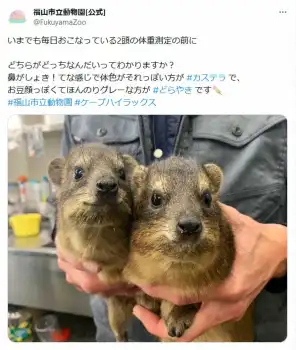 福山市立動物園からの超難問!ケープハイラックスの見分け方にファン困惑「わからん」「名前もかわいい」