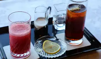藤井は「苺『とちあいか』で作った苺ジュース」とアイスティー、菅井はアイスコーヒーだった。