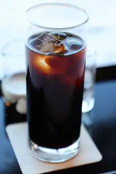 菅井八段午後のおやつ、アイスコーヒー(撮影・大城 有生希)