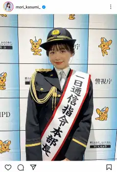 森は制服姿の写真をアップし「本日、警視庁通信指令本部の一日本部長を務めさせていただきました」と報告。