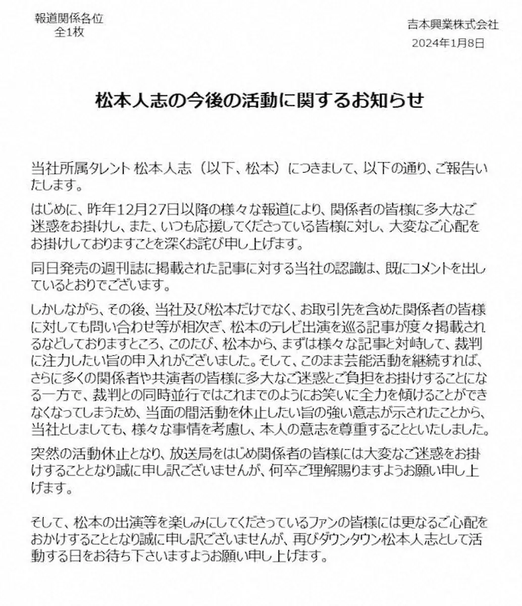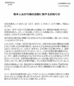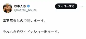 ダウンタウンの松本人志 Photo by スポニチ 松本人志が活動休止 1年以上か…女性関係巡る報道受け裁判に注力「闘いま… ギャラリーで見る この記事のフォト 2024年01月09日の画像一覧 もっと見る 2024年01月09日の画像をもっと見る