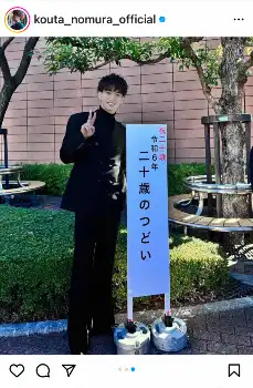 俳優の沢村一樹(56)の次男で俳優の野村康太(20)が8日、自身のインスタグラムを更新。成人式への出席を報告した。