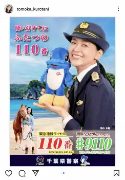 「適切な110番通報と♯9110(しゃーぷきゅういちいちまる)の周知の為、イメージキャラクターとしてポスターに出演してます。千葉県内の警察や交番、公共施設に貼ってあるので、是非チェックしてみてね!ヨモちゃんも写ってるよ~」とポスターの画像も投稿した。