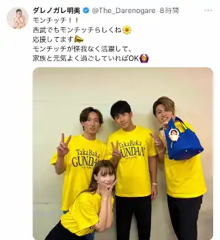 共演時4人で撮った写真を添えて、「モンチッチ!!西武でもモンチッチらしくね 応援してます モンチッチが怪我なく活躍して、家族と元気よく過ごしていればOK」と西武への移籍が決定した甲斐野に対してエールを送った。