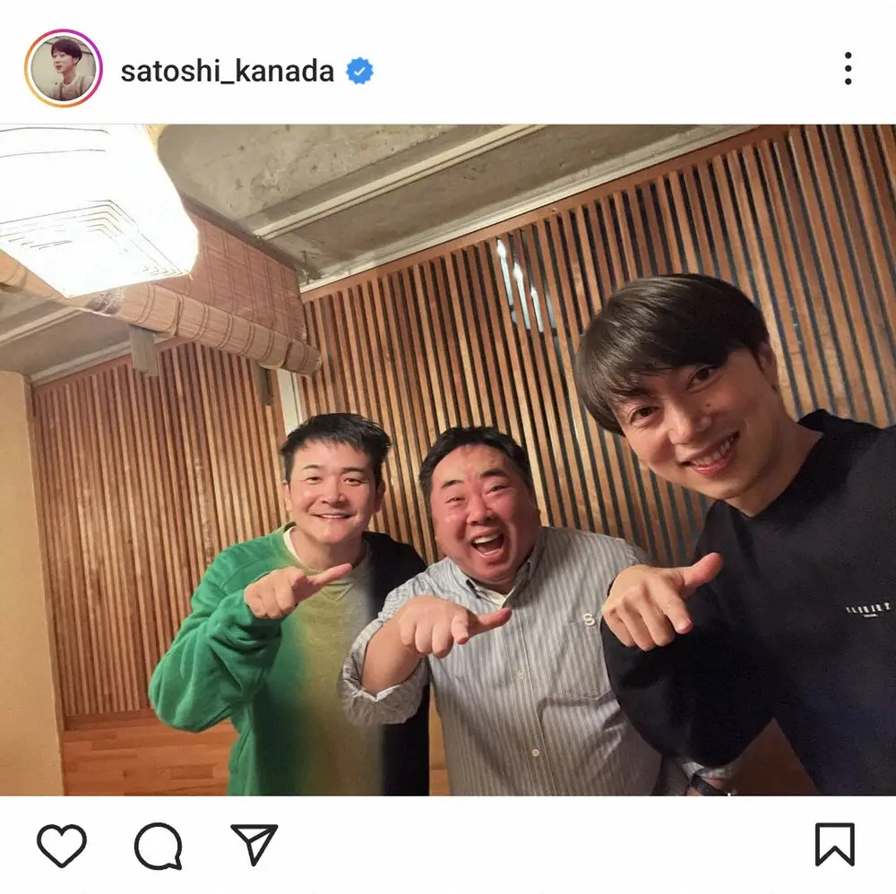 お笑いコンビ「はんにゃ」の金田哲(37)が12日までに自身のSNSを更新。お笑いコンビ「千鳥」のノブ(44)、「ドランクドラゴン」の塚地武雅(52)と共に「KinKi Kids」堂本剛(44)と「ももいろクローバーZ」百田夏菜子(29)の結婚を祝福するショットを披露した。