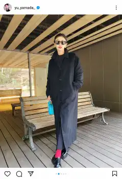 山田は「こう見えてダウンだから とっても暖かいのにスッキリしたシルエットでキレイに着れる」と紹介。「私の冬の味方ですw」と、黒いロングコートにバッグや靴下で差し色を入れたファッションを公開した。