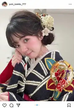 テレビ東京の冨田有紀アナウンサー(25)が12日に自身のインスタグラムを更新。艶やかな振り袖姿を披露した。