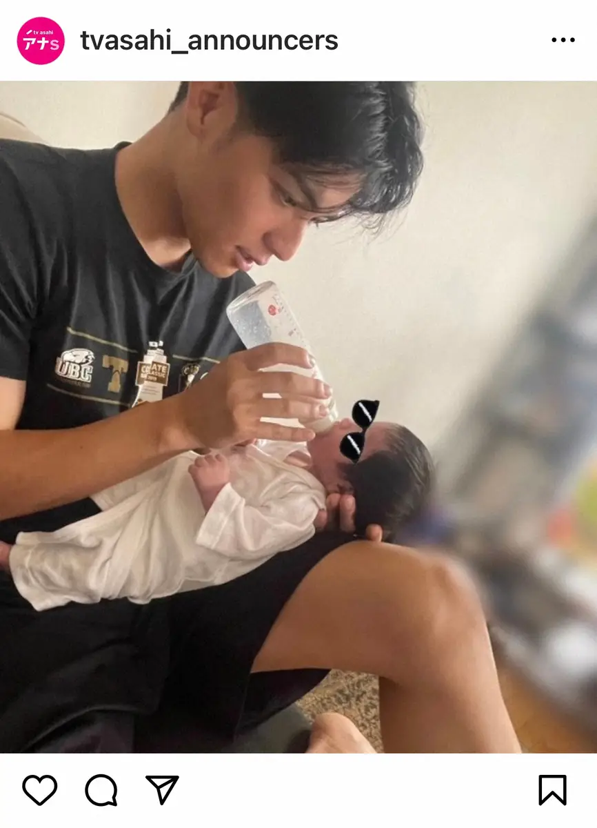 テレビ朝日アナウンサーの公式インスタグラムが13日に更新され、東大野球部出身で22年に同社に入社した武隈光希アナウンサー(26)の昨年誕生したわが子とのツーショットを公開した。