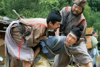 帰り道。つまずいた小石を蹴ると草履が飛んでしまい、散楽を見物している男の頭に当たる。足の傷にピンときた。「あなたはもしかして、足で字が書ける人ですか?」。6年前の約束の日、母・ちやは(国仲涼子)を亡くし、再会が叶わなかった三郎(道長)だった。
