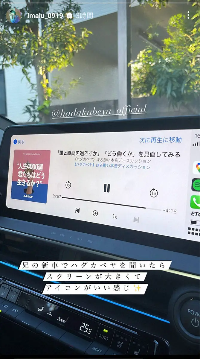 IMALUのインスタグラム(@imalu_0919)より IMALU 兄・二千翔さんの新車のディスプレーが大きくて「いい感じ」これで… ギャラリーで見る この記事のフォト 2024年01月15日の画像一覧 もっと見る 2024年01月15日の画像をもっと見る