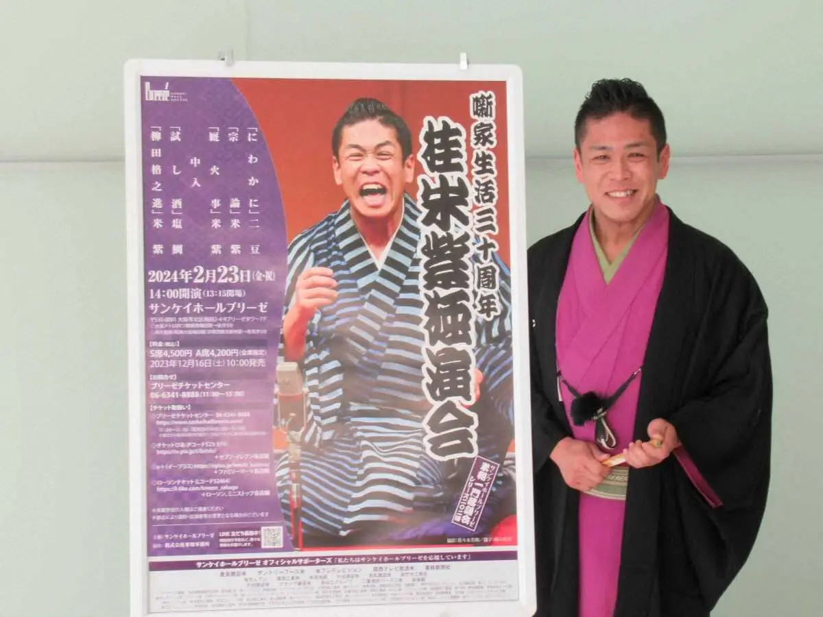 落語家・桂米紫(49)が15日、大阪市内で「噺家生活三十周年記念 桂米紫独演会」(2月23日、サンケイホールブリーゼ)の発表会見に登場。「大きな挑戦。緊張よりも楽しみたい。気負いなく、落語の幅を広げていきたい」と抱負を語った。