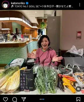 そして「カトノリマルシェからは冬野菜のオレンジ白菜や春菊、大根、菊芋…皆様とおしゃべりしながらお手に取って頂き、ありがたくも完売しました!」と報告。「じっくり大切に育てたお野菜、美味しく味わって頂けたら幸せです こんな機会をくださった、今日子先輩には心から感謝です(ずっと大好きです)」と感謝した。