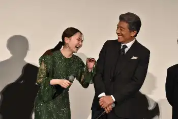 映画「ゴールデンカムイ」の初日舞台あいさつで仲の良い様子を見せる山田杏奈と舘ひろし(撮影・糸賀日向子) Photo by スポニチ 山田杏奈 舘ひろしのひと言に歓喜「今日もルンルン」 ギャラリーで見る この記事のフォト 2024年01月19日の画像一覧 もっと見る 2024年01月19日の画像をもっと見る
