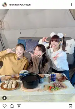 さゆりは「ゆうちゃみちゃんあかりんとキャンプ~」とコメント。ロケでのオフショットを披露、「初めての女子会キャンプ」「ママより年上だけど~女子会って言っちゃえの巻」とつづった。