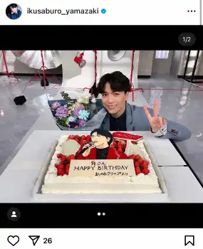 俳優の山崎育三郎(38)が19日までに自身のインスタグラムを更新。バースデーケーキを前に笑顔を浮かべるショットを公開した。
