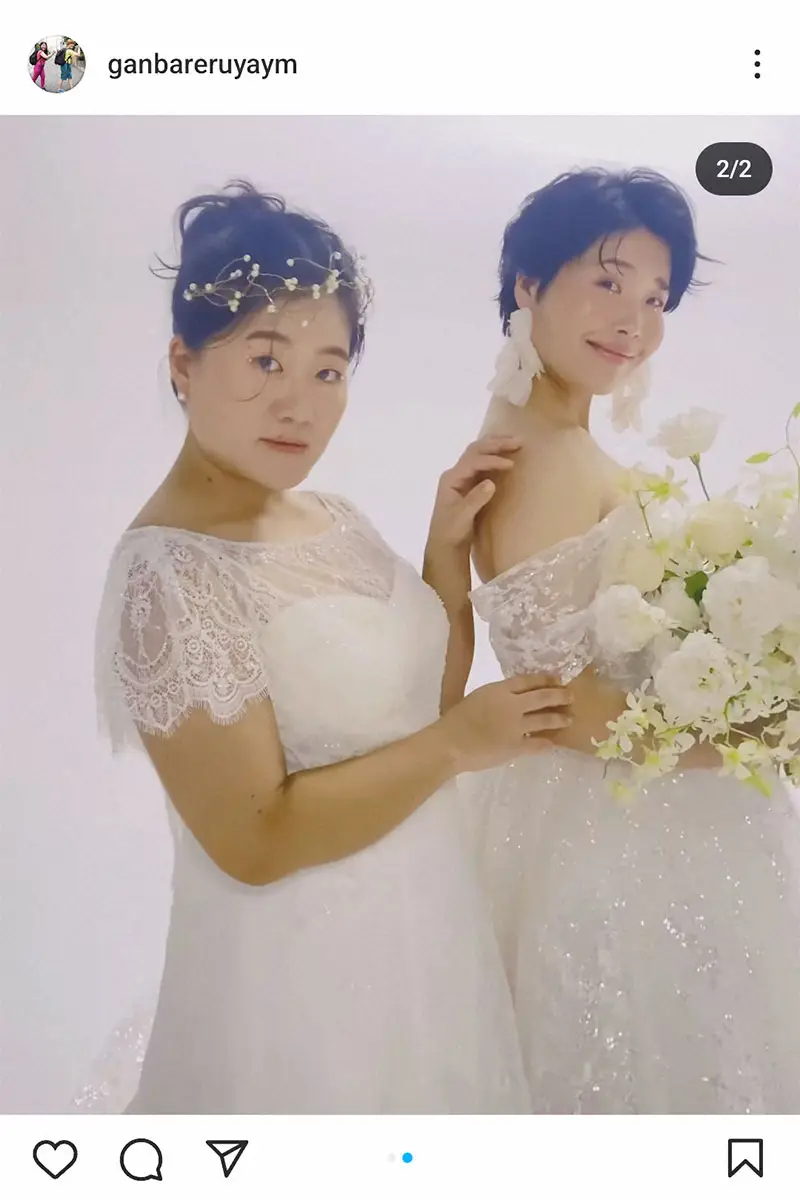 お笑いコンビ「ガンバレルーヤ」のまひる(30)、よしこ(33)が19日、自身のインスタグラムを更新し、美しいウエディングドレス姿を披露した。