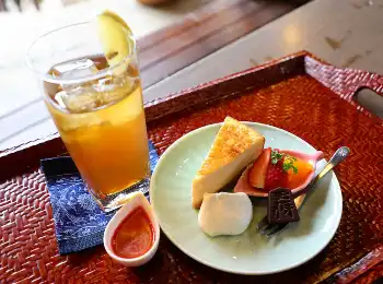 藤井は「ベイクドチーズケーキ」とアイスレモンティー、菅井は「濃厚ミルクプリン」とホットコーヒーをオーダー。対局場となっている佐賀県上峰町の老舗料亭「大幸園」が提供した。
